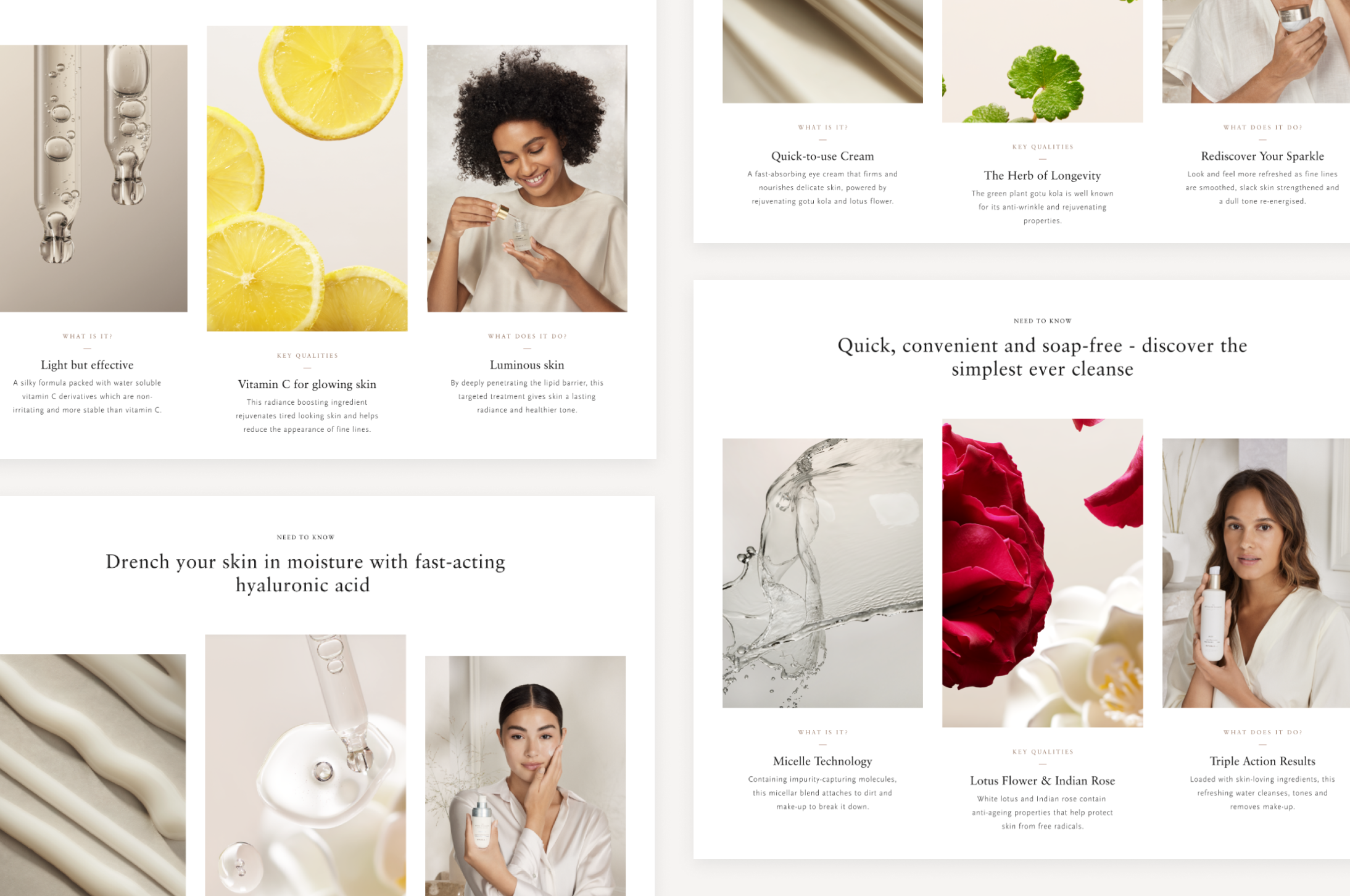 Alongside the interface design, we developed a content strategy designed to bring customers closer to the products: exploring ingredients, textures, and benefits through a structured and immersive digital narrative.